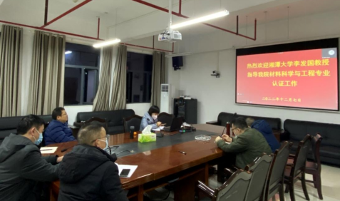 (通信员:向延鸿)12月7日19点,湘潭大学金属材料专业负责人李发国教授应邀为我院材料科学与工程专业老师做工程教育专业认证讲座。本次讲座通过线上会议的形式进行,由材料系教研室主任杨学弦主持,学院院长黄勇刚、副院长杨红、副院长毕仁贵、院长助理伍建华、以及材料科学与工程专业全体教师参会。