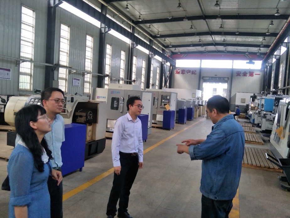 图为考察金工实训基地
