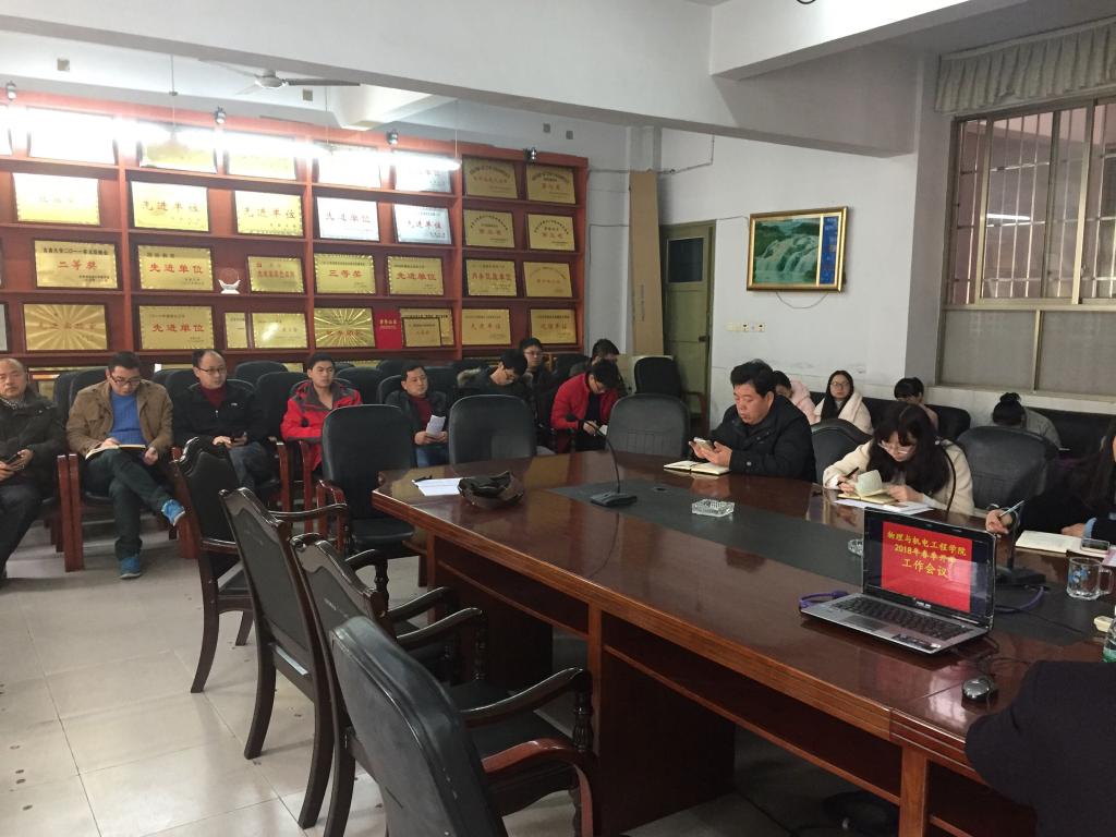 (通讯员:刘景春)34日上午1130分,我院在第三教学楼三楼会议室召开了“2018年春季开学工作会议”。院长彭金璋、党委书记熊文斌、党委副书记程安垣、院长助理孙晶、黄勇刚及全院教职工参加了本次会议。