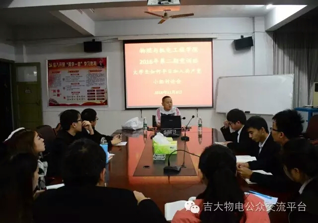 晚上七点就“大学生如何早日加入中国共产党”以班级为单位进行分组讨论,辅导员任志君老师首先发表了讲话,希望同学们能通过这次培训培养出思维意识,不断学习,向党靠拢,成为一个优秀的人。之后同学们进行了热烈的讨论,气氛浓厚。然后各小组代表进行了发言,最后辅导员任志君老师进行总结性发言,跟同学们分享了他自己入党前后的思想变化,告诉同学们,首先要思想入党,再行动入党,在培训中成长,变得越来越优秀。
