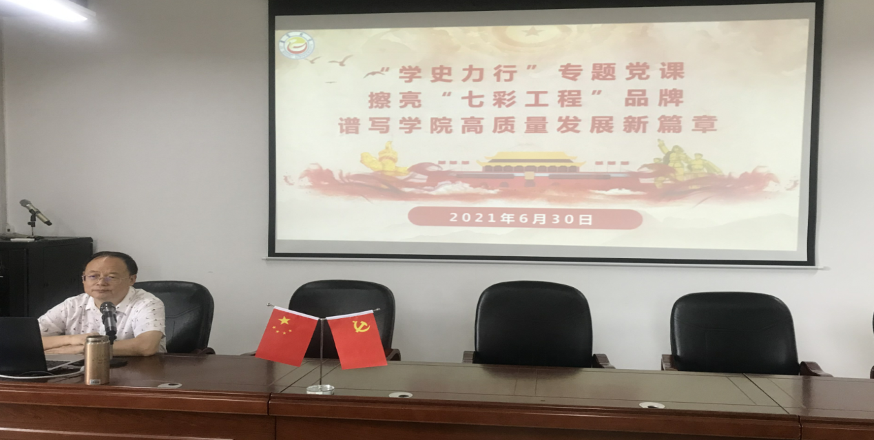 熊文斌书记以《擦亮“七彩工程”品牌,谱写学院高质量发展新篇章》为主题,从红色教育工程“五个抓”、橙色关爱工程“四个心”、黄色预警工程“五提醒”、绿色服务工程“三建一树”、青色培训工程“三新一德”、蓝色帮扶工程“一二三四五”、紫色创优工程“七比七争”七个方面将学院的党建工作、特色品牌、学院文化等向师生党员进行了详细的介绍,结合学院实际情况向师生们展示了学院近几年取得的成绩,明确了未来努力的方向。