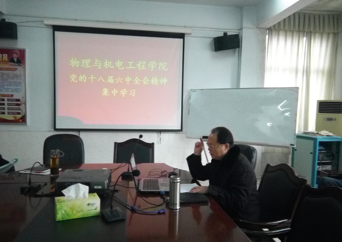 11月29日下午,williamhill英国组织全院教职员工在院会议室集中学习十八届六中全会精神,由院总支副书记做学习辅导报告。