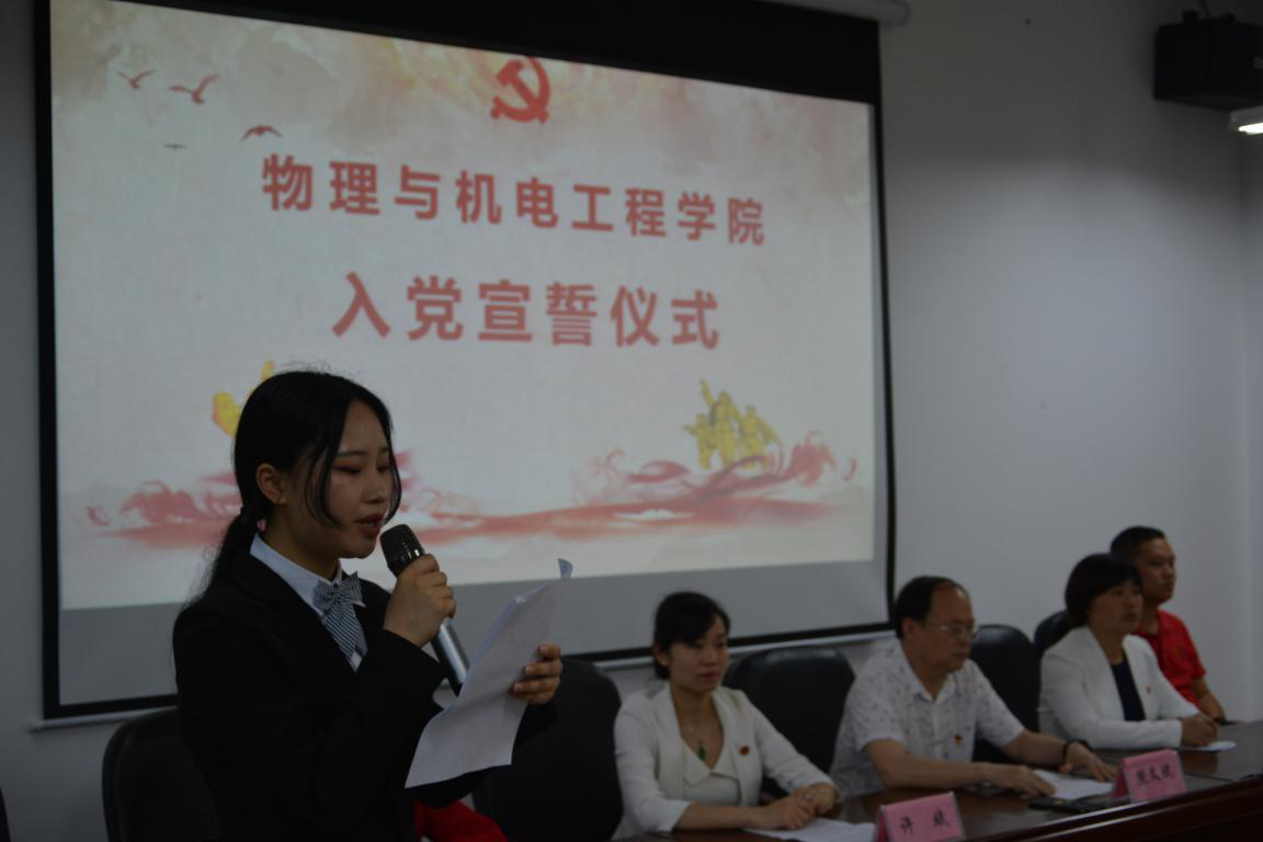 随后,全体老党员为新党员佩戴党徽,在朱姗姗老师的带领下,全体党员面对鲜红的党旗庄严宣誓,学生新党员代表段晓月同志进行了发言,她表示将不忘初心、继续努力,为共产主义事业奋斗终身。