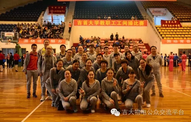 我院第六个出场,工间操比赛伴舞音乐是“摆起来”,正如歌词,把曼妙的舞姿摆出来,把轻松的心情摆出来,把青春的活力摆出来,把美好的生活摆出来,每一位老师都精神抖擞,每一个动作都充满活力,将比赛主题诠释得淋漓尽致,赢得观众和评委的一致好评。比赛在两位主持人声声祝福中结束。