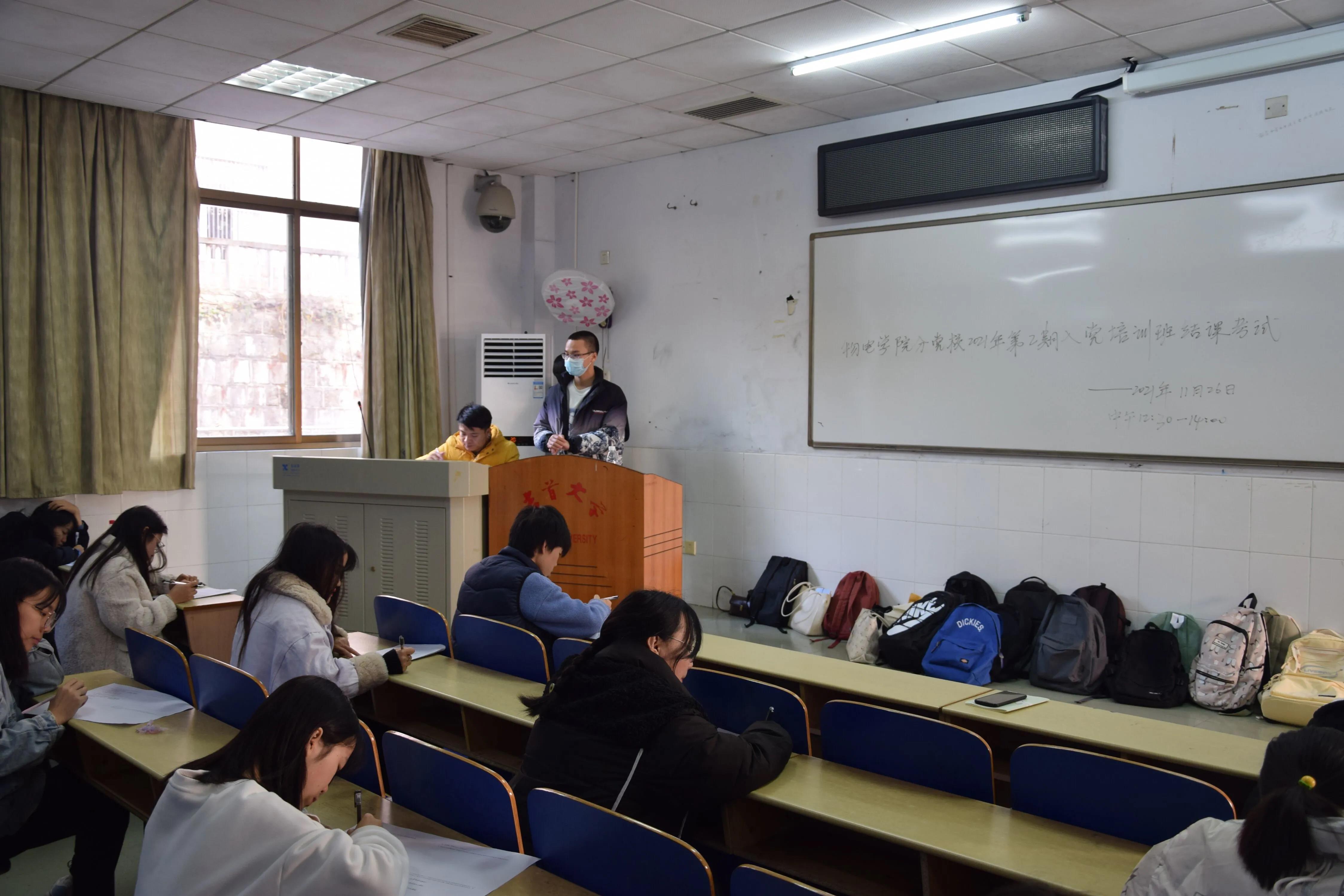 11月26日中午12:30,我院在第六教学楼60119、60120、60121教室进行了2021年第二期入党培训班结课考试,全体入党积极分子和党员发展对象参加此次考试。