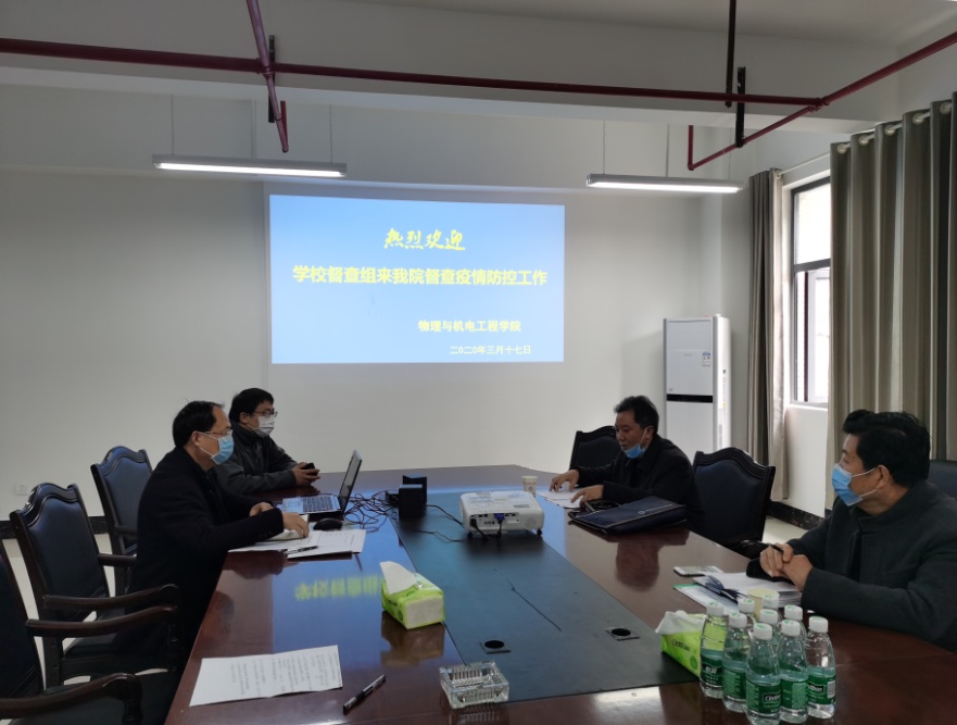 (通讯员:沈言)3月17日上午,学校督察组陆升合、程安垣一行代表学校党委深入到我院督查我院新冠疫情防控工作。院长邓科、院党委书记熊文斌、院办公室主任刘景春在学院小会议室就学院防控情况进行了介绍、汇报。