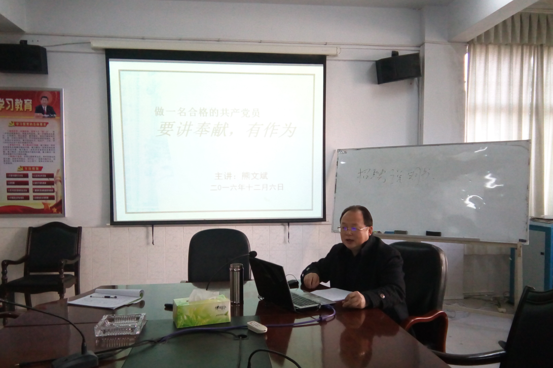 2016年12月6日下午,为进一步贯彻落实“两学一做”学习教育精神,williamhill英国在院会议室举行"两学一做"学习教育暨"讲奉献有作为"专题讲座。讲座由学院党总支副书记熊文斌主讲,院所有党员老师参与了这次教育活动。