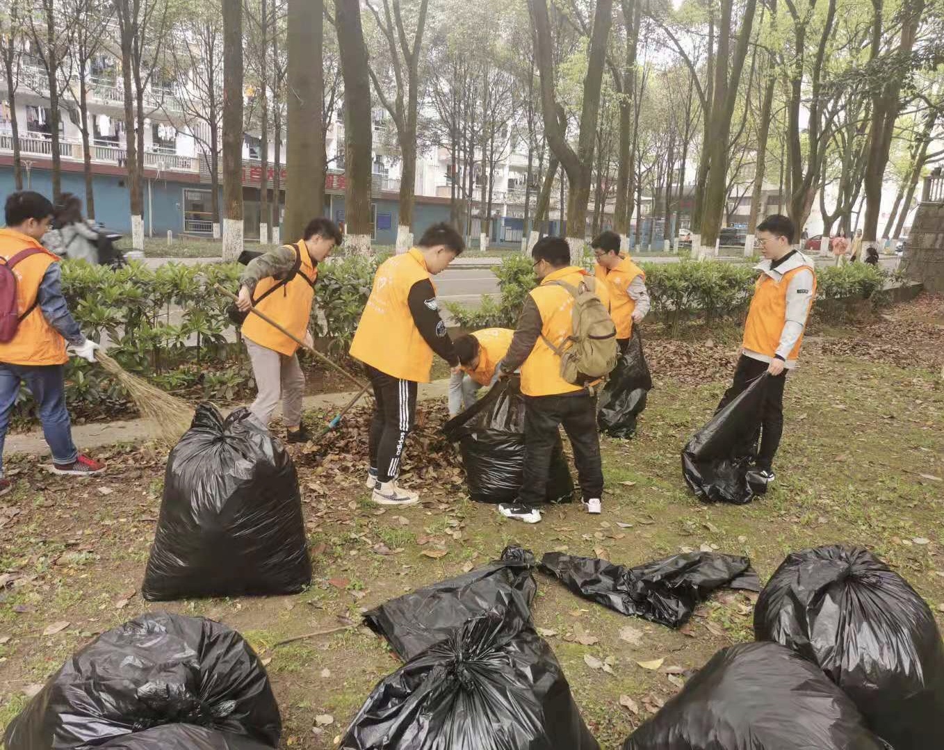 为了做好本次清扫活动,支部委员进行了分工,以小组为单位明确任务,落实责任。活动中,每个同学都不怕脏、不怕苦、不怕累,有的用扫帚清扫落叶,有的忙着把扫好的落叶装进垃圾袋,大家热情高涨,乐在其中。