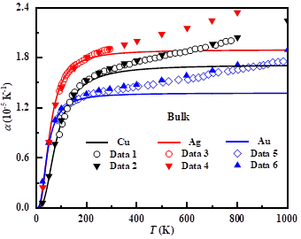 该研究工作从热膨胀系数的定义式出发,结合键弛豫理论、局域键平均近似方法和核壳结构模型,建立了热膨胀系数温度和尺寸效应的定量分析方法。研究发现晶体材料中,结合能和德拜温度的三次方与热膨胀系数成反比。结合能和德拜温度均随着过渡金属材料尺寸的减小而减小,从而引起了材料热膨胀系数的尺寸效应。同时,构成材料的化学键性质参数调控着热膨胀系数尺寸效应的剧烈程度。通过对实验结果的解析,定量获得了12种过渡金属的德拜温度、刚性因子、键性质参数和温度-尺寸场条件下的热膨胀系数。本研究为过渡金属热学性能分析提供了简单、准确的新方法。