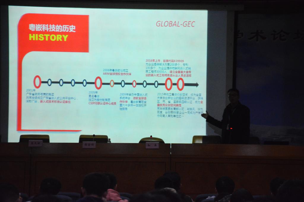 最后,周阳经理就粤嵌实习基地的发展历史、实习技能及实习环境做出了详细介绍。
