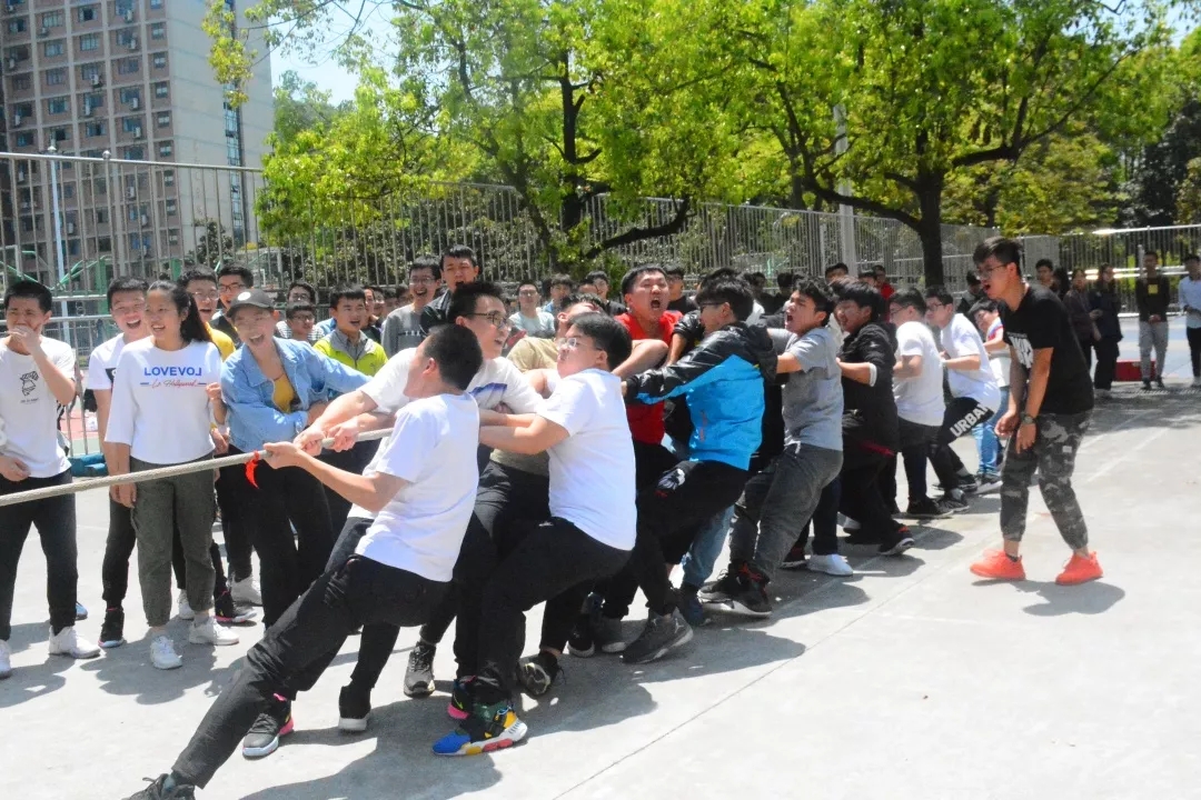 天空终于放晴,润红的娇阳为晴天添加了一抹色彩。参赛队伍都早早地到达了比赛地点,个个雀雀欲试,想在拔河中大显身手。很快,比赛开始,一组组队伍皆使出浑身解数,欢呼声和呐喊声响彻云霄,比赛中每个人都激情四射。