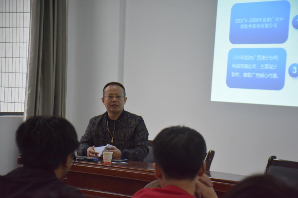 首先,熊书记向大家简单介绍了肖海龙校友。肖海龙校友2003年9月就读于英国威廉公司,现任广西新鸿通科技产业园有限公司董事长。