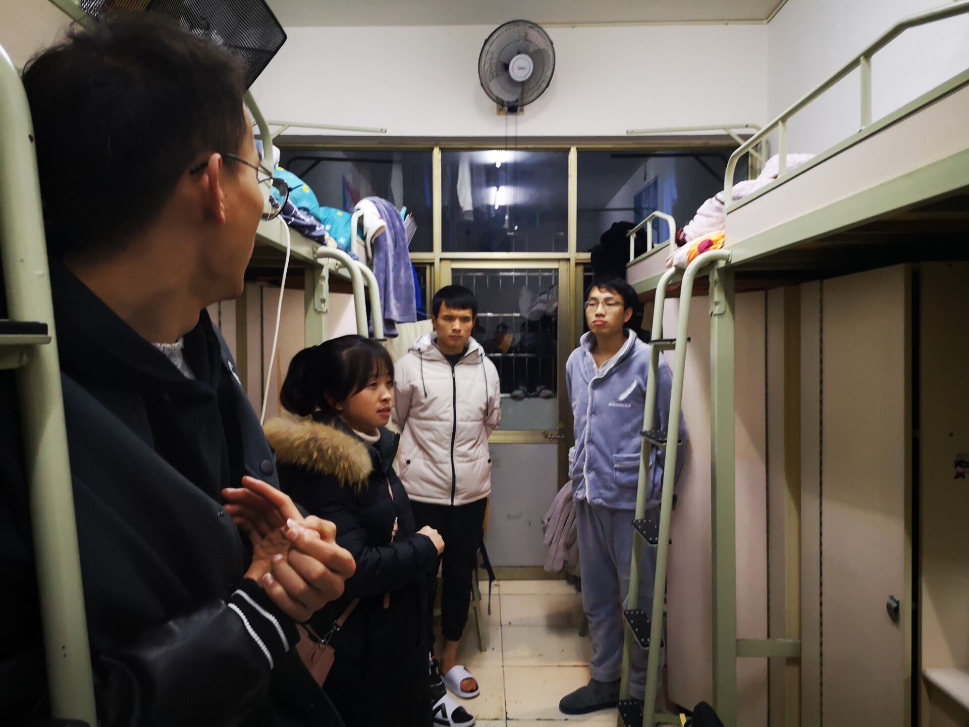 各个老师深入每一间学生宿舍,就严禁使用违禁电器、注意保护人身和财产安全等宿舍安全问题、期末诚信考试及文明使用互联网等问题逐一进行了强调。随后,老师们还耐心细致地与同学们进行交流,叮嘱同学们要注意休息和防护,认真复习,给即将结束的学期交上一份满意的答卷。