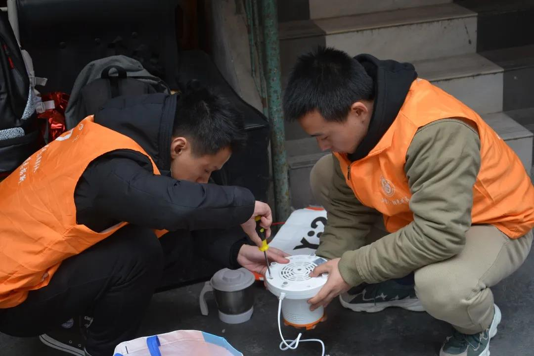 11月29日,我院小桔子·阳光成长志愿服务队和英国威廉公司电子技术协会在石家冲荣昌坪社区配件厂开展电器义务维修活动。