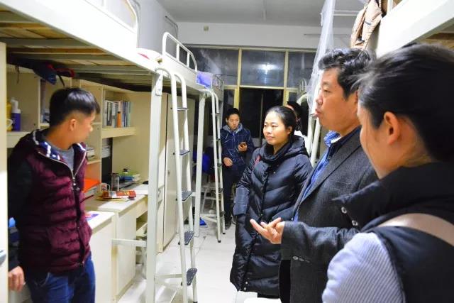 本次走访检查的重点是对宿舍卫生、禁用电器的使用、饲养宠物等情况进行排查。每到一个宿舍,领导、老师们都会与学生亲切交谈,鼓励同学们克服冬天寒冷带来的困难,坚持早睡早起,坚持学习。同时,还摸摸学生的被子,看看是不是暖和,并提醒同学们注意用电安全,防止意外事故的发生。