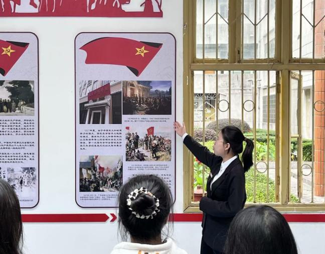 沿着思想政治教育园的楼梯拾级而上,同学们以“中国道路”为主线,展开了一场寻根问脉的革命之旅。映入眼帘的不仅仅是烽火硝烟、红旗漫卷的宏大叙事,更是写满了中国人民敢于斗争、团结奋斗的伟大历程。在志愿者的讲解下,同学们重温了中国共产党波澜壮阔的辉煌历史,深刻感受中国共产党为什么“能”、马克思主义为什么“行”、中国特色社会主义为什么“好”。