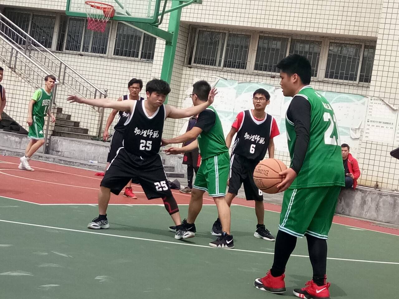 3月23日上午,18电科与17物师、16机一与16物师在新篮球场上进行了激烈的篮球比赛。