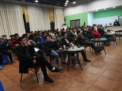 刘志勇博士报告了自己通过对杜仲胶的改性,实现形状记忆材料的制备,即利用化学交联法,使杜仲胶链上的双键发生部分交联,通过改变反应条件,获得了不同交联度的材料,并实现了其热响应的形状记忆功能。此外,他还汇报了所在课题组制备的电响应杜仲胶形状记忆材料。刘志勇博士用通俗易懂的讲解方式,让在场师生了解了形状记忆聚合物、以杜仲胶为基体的形状记忆材料以及在生活中的一些应用前景,这对提高杜仲胶的附加值,为湘西杜仲的开发与应用提供新的思路和应用研究基础,具有重要的意义。