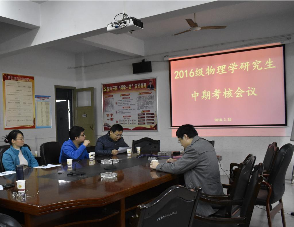 2018年3月25日上午9点williamhill英国召开2016级物理学研究生中期考核答辩会。校纪委书记、物理学科带头人赵鹤平教授、2016级研究生导师及学院所有研究生出席了会议。会议由院长助理黄勇刚博士主持。